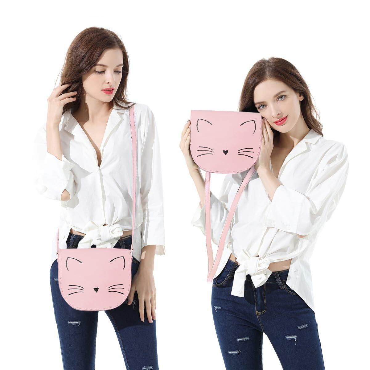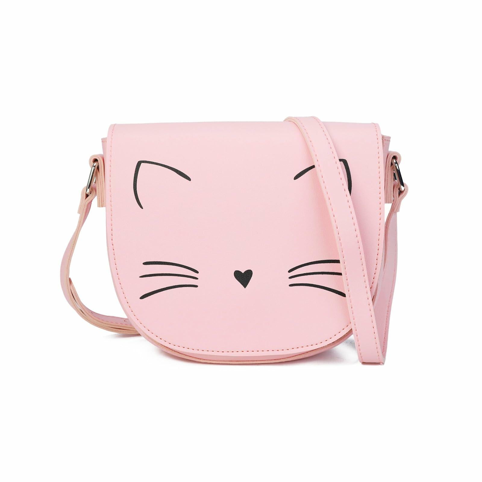 Add a playful touch to your everyday style with this adorable cat-themed crossbody purse! Crafted from soft pink faux leather, it features a delightful cat face design with whiskers and a heart-shaped nose, perfect for feline lovers and anyone who enjoys whimsical accessories.